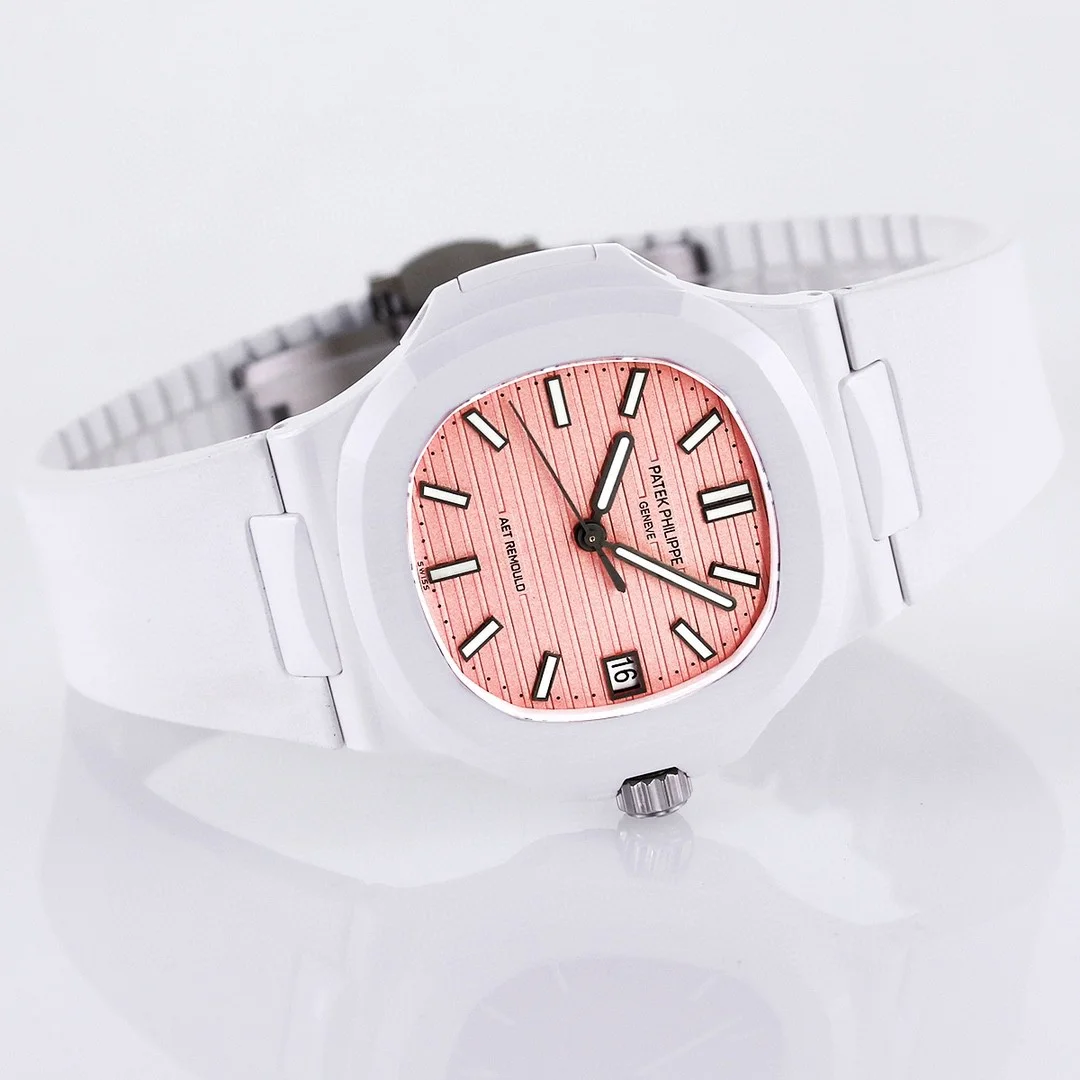 AET remould Patek Philippe ceramic Pink dial with strap is a 1:1 superclone watch. It is made with the same materials and to the same specifications a…