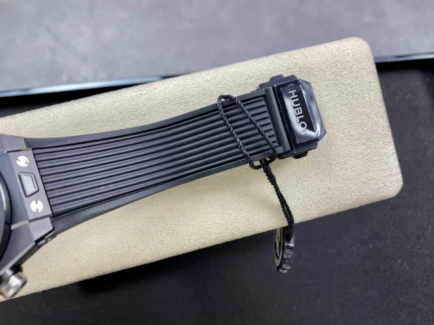 Screw-down crown in black PVD with Hublot logo