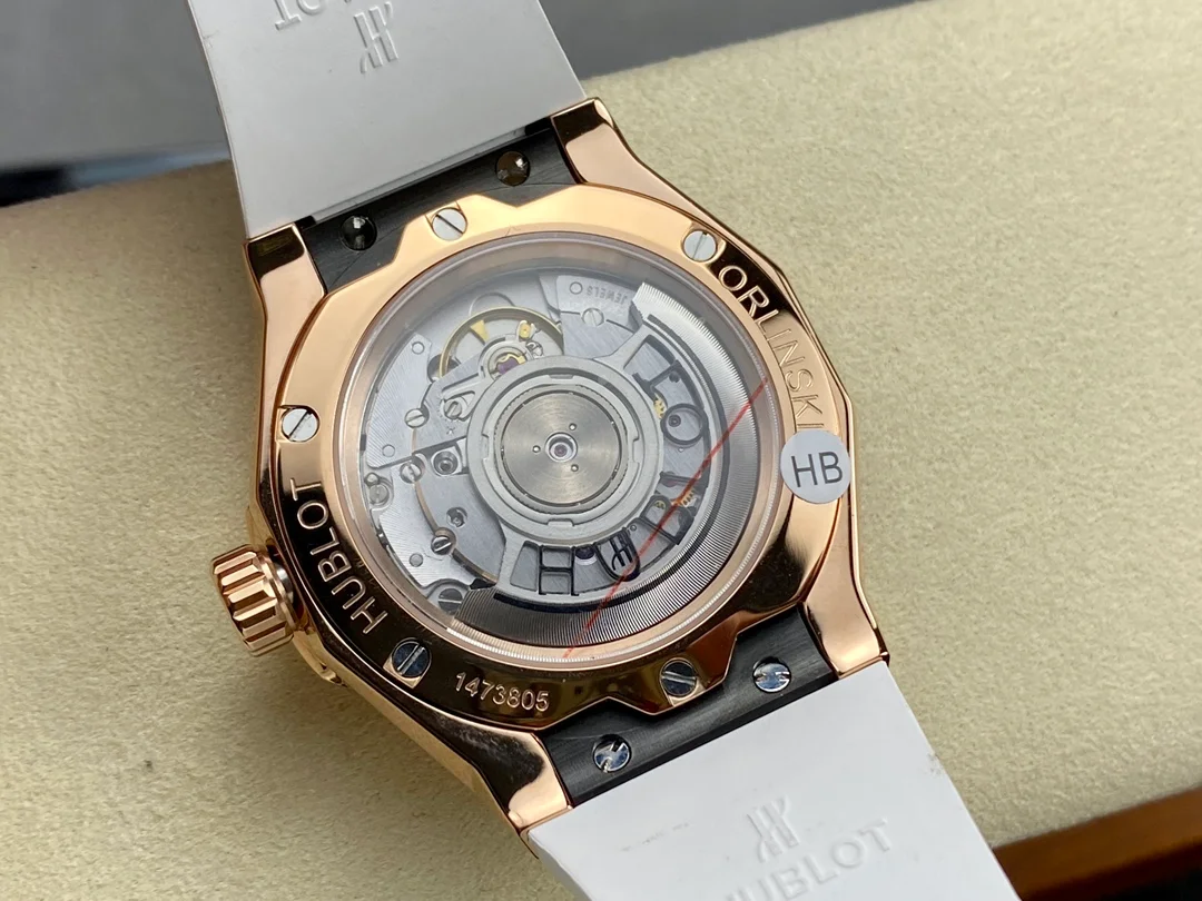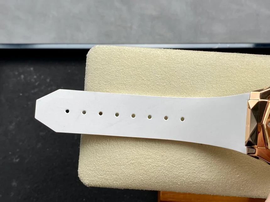 Orlinski’s signature faceted design on the case and bezel, giving it a unique and modern aesthetic