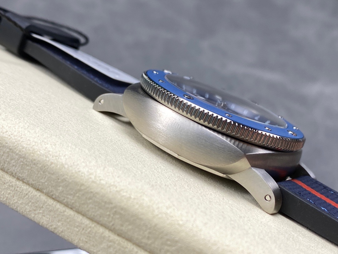 Brand -Officine Panerai 44M Bezel -Fixed Bracelet- Black Ca lfskin Blue Alligator Case-904L Stainless Steel with DLC coating Staineless Steel Case Bac…