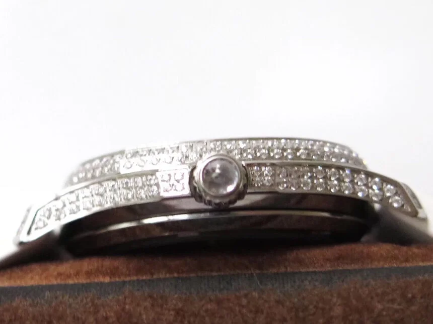 Lab Created Swiss Cut Diamonds Encrusted on 904L Steel Case complete with Patek Philippe Markings and Engravings