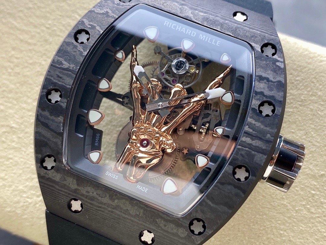 Richard Mille RM052 SUPERCLONE Edition, Titanium, Skeleton Silver Skull Dial, Black Rubber Strap, SWISS Tourbillon Manual Winding Size: 42 mm x 51 mm …