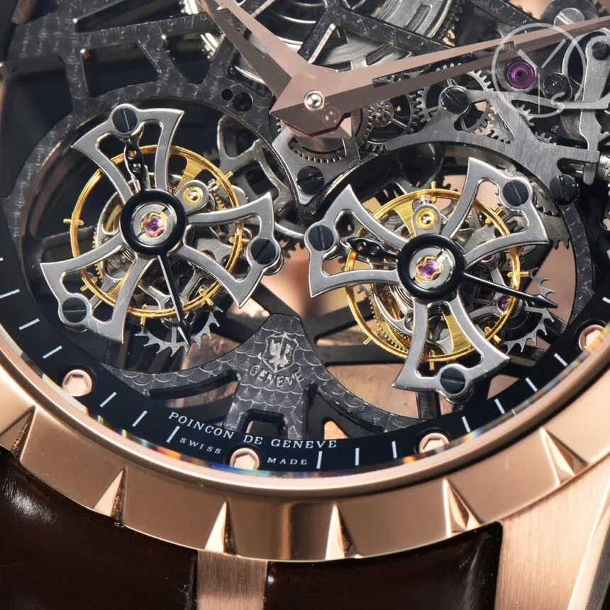 The Roger Dubuis King series hollow double flying tourbillon 1:1 Superclone has the following specifications: